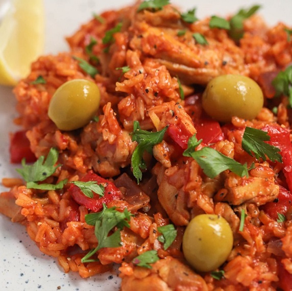 Next add in the paprika, chicken broth and tomato sauce. Bring to a boil, then turn down the heat to low. Add the saffron, cover the pan with a lid and cook gently for 25 minutes until the rice is ready.