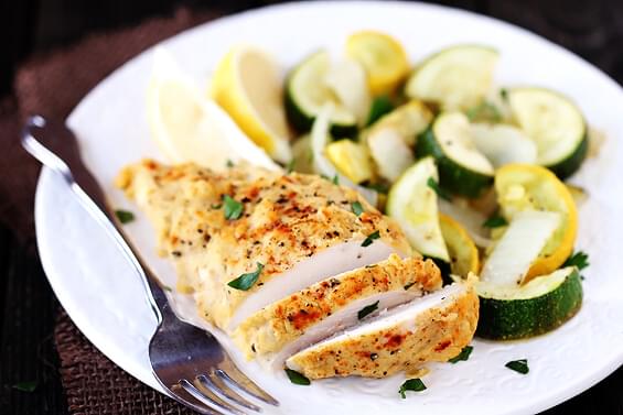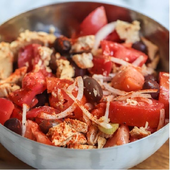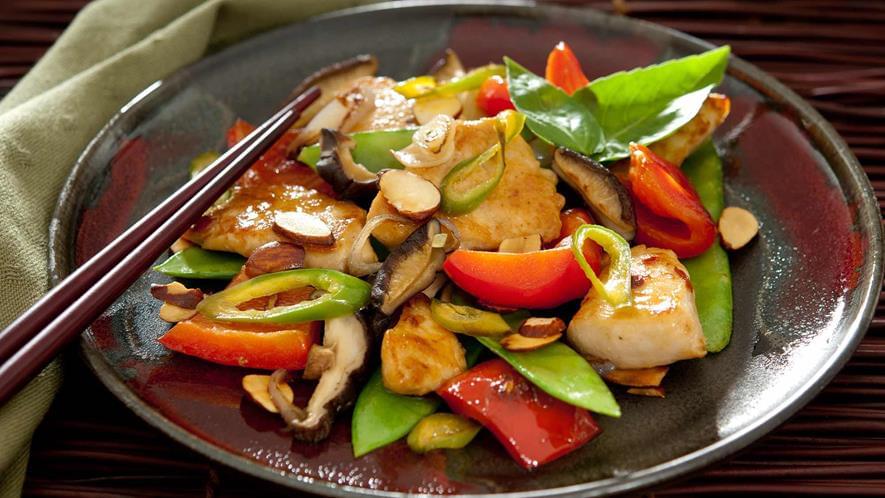 Heat the olive oil in a large skillet over a medium heat. Add the chicken and season with salt and pepper. Cook for 5-6 minutes until slightly brown.