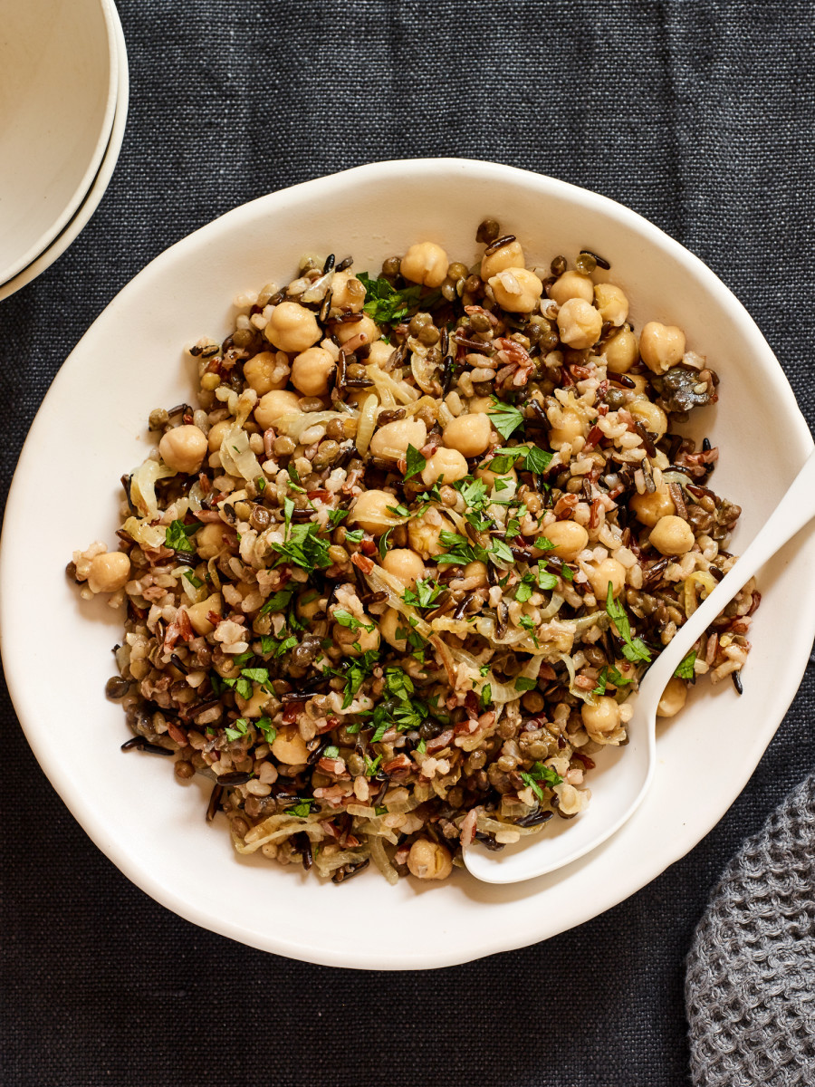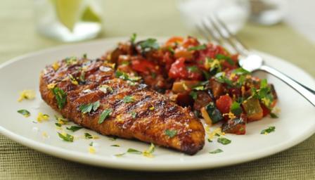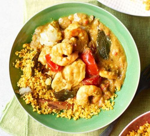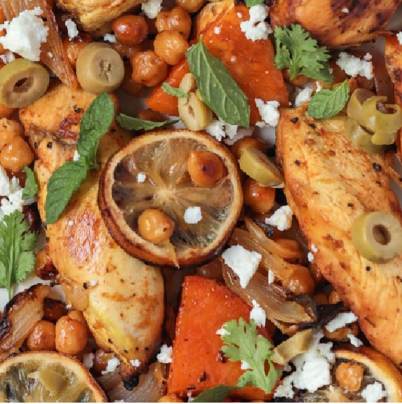 Season with a little more salt and pepper to taste, and stir through the olives and coriander. Serve with lemon wedges.