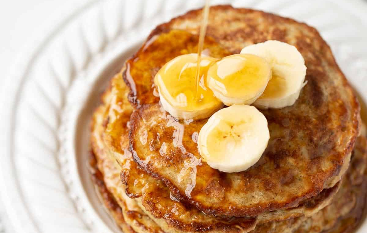 Serve with fried bacon and blueberries, and drizzle over the maple syrup.