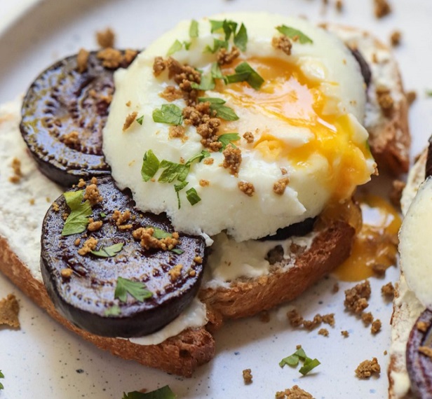 Whipped Feta & Beet Toast with Poached Egg
