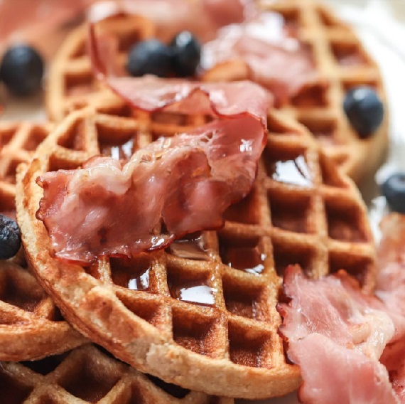 Waffles with Bacon, Blueberries & Maple Syrup